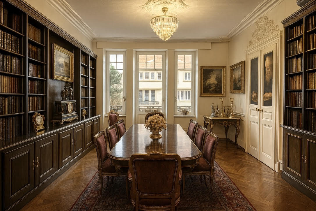 Ce bien d'exeption est en très bon état général, parquets massifs d'origine, magnifiques moulures d'époque, grande hauteur sous plafond, climatisé, calme et clarté.
