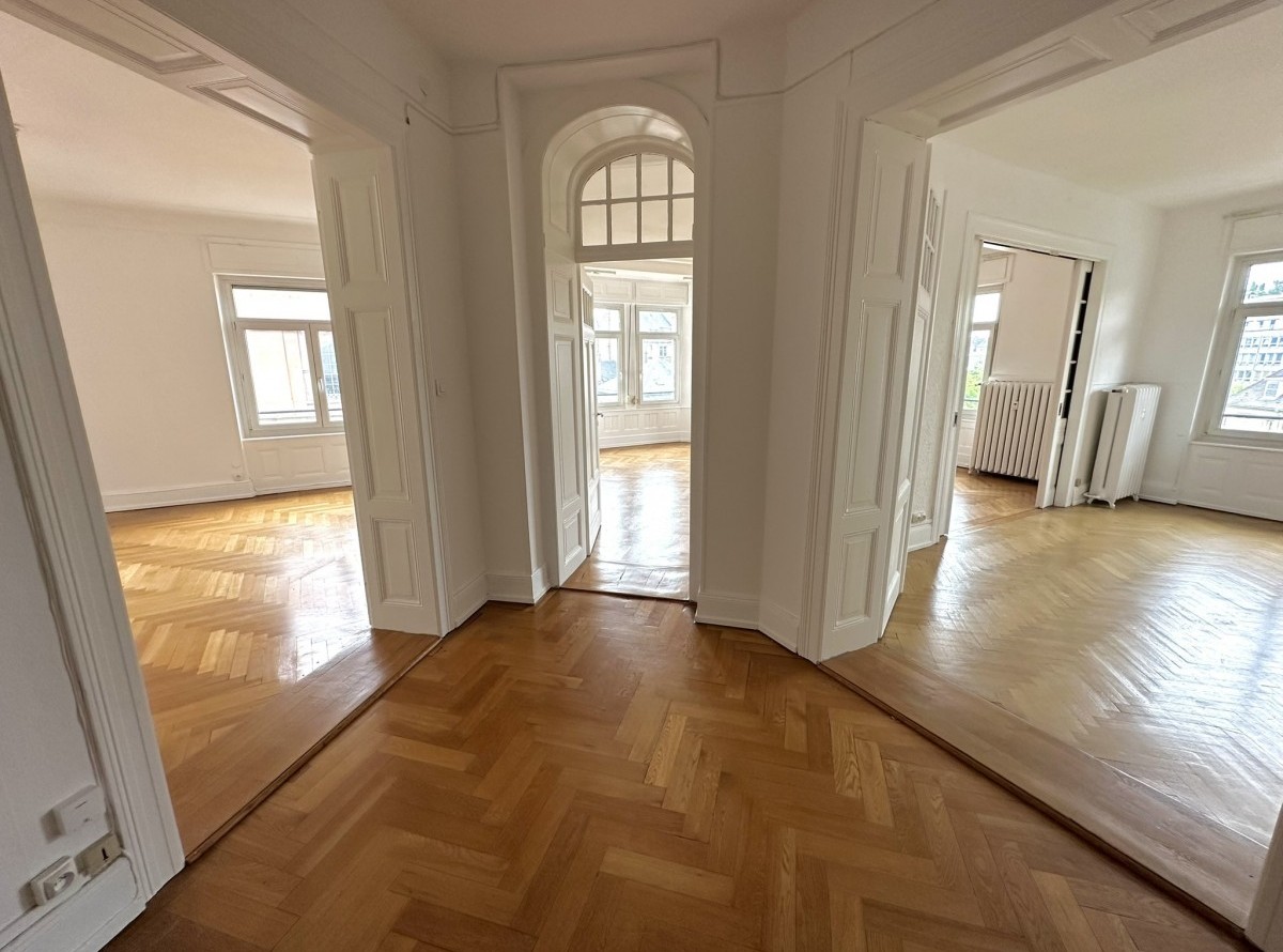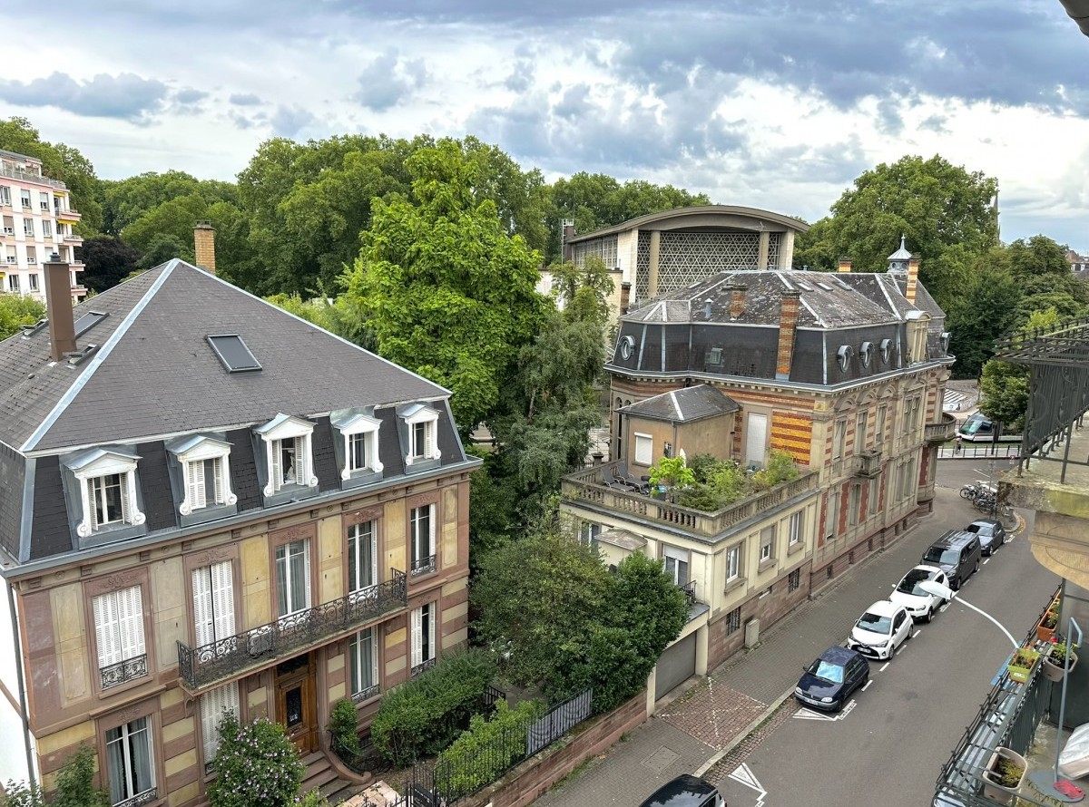 Dans rue prisée du quartier des Contades, rue Ehrmann, très beau 5 pièces de 160 m2 dans l'angle du 4ème étage de l'immeuble avec ascenseur.Agencement intérieur : une entrée spacieuse, une double réception, 3 chambres, une salle d'eau, une salle de bains, une cuisine séparée équipée, un WC séparé, un balcon.